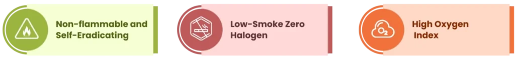 The restriction of high amounts of smoke is another key feature of FR-LSH. The reduced amount of smoke improves the visibility of the fire for better emergency response. At the same time, low halogen emission signifies that, during fire, the low toxicity emission of these gases makes the environment safer.